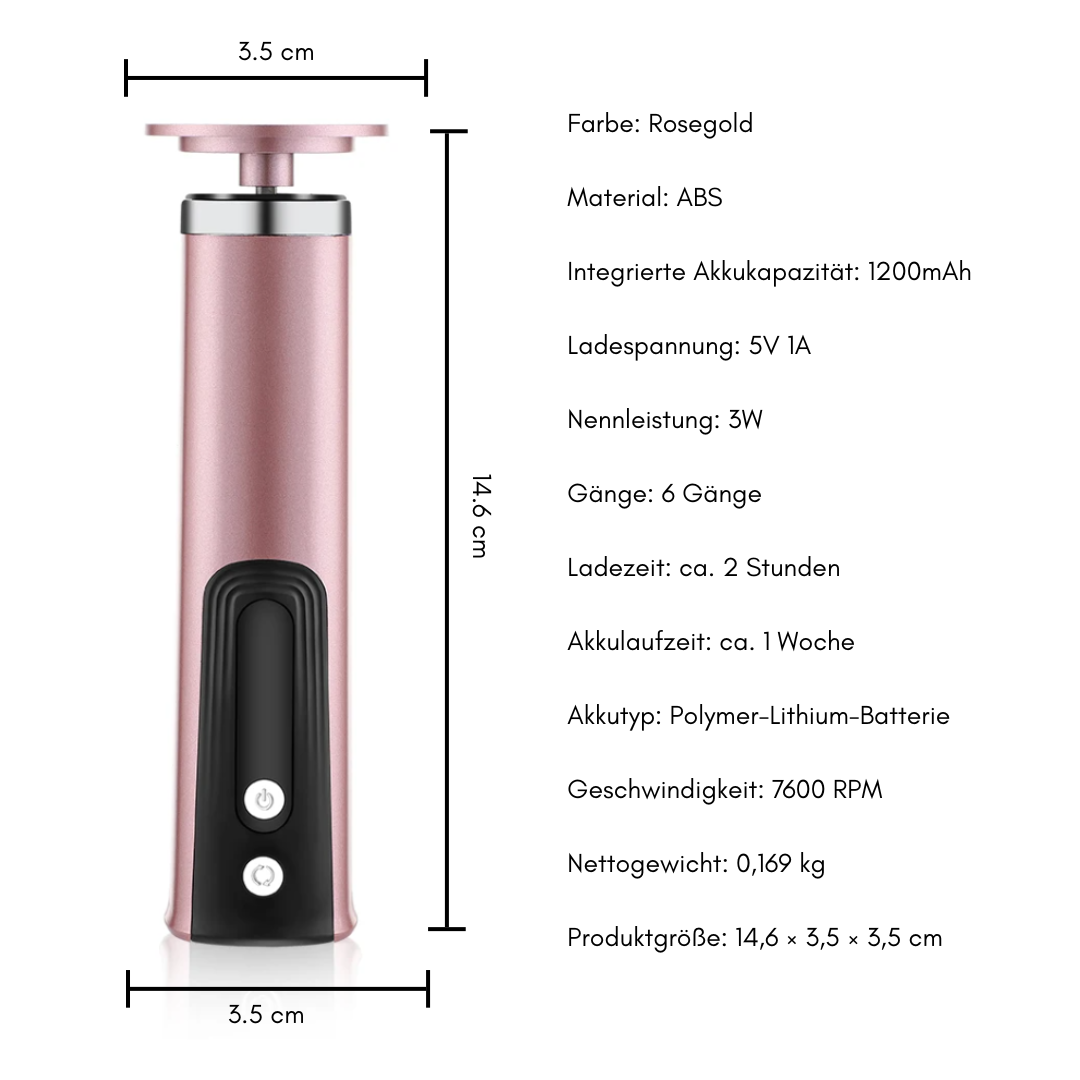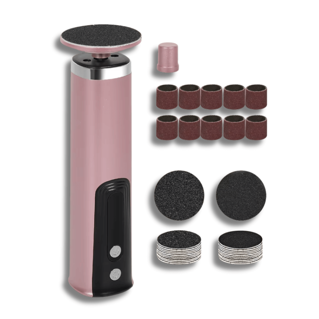- Vielseitig: Zwei Schleifköpfe, Schleifringe, austauschbares Schleifpapier; entfernt Hornhaut, poliert Nägel, sorgt für glatte Füße.